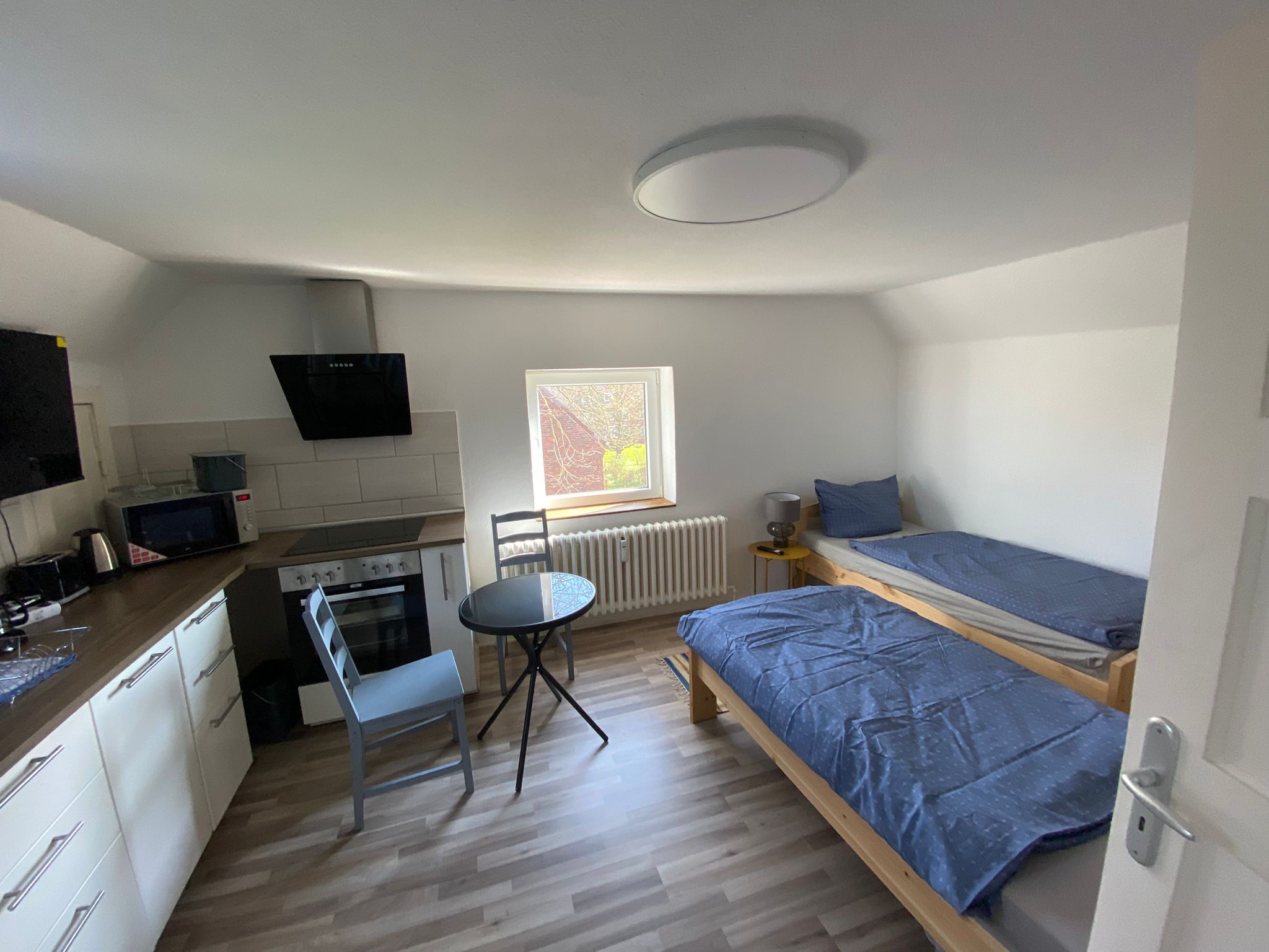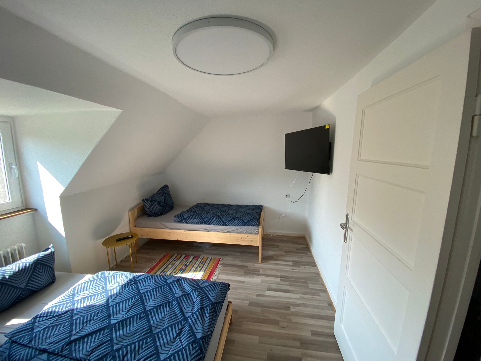 Die Wohnung selbst befindet sich im 2. OG und besteht aus zwei Zimmern, Flur und Duschbad. Beide Zimmer sind mit Smart-TVs ausgestattet und es gibt einen Internetzugang. Im Badezimmer befindet sich eine Waschmaschine zu Ihrer Verfügung. Alles in allem eine nette Wohnung, in der sich Ihre Mitarbeiter nach einem anstrengenden Arbeitstag zu erholen können.